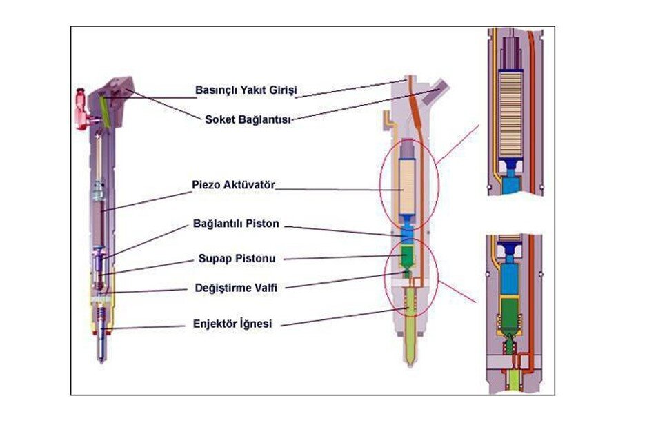 Piezoelektrik enjektörünün iç yapısı