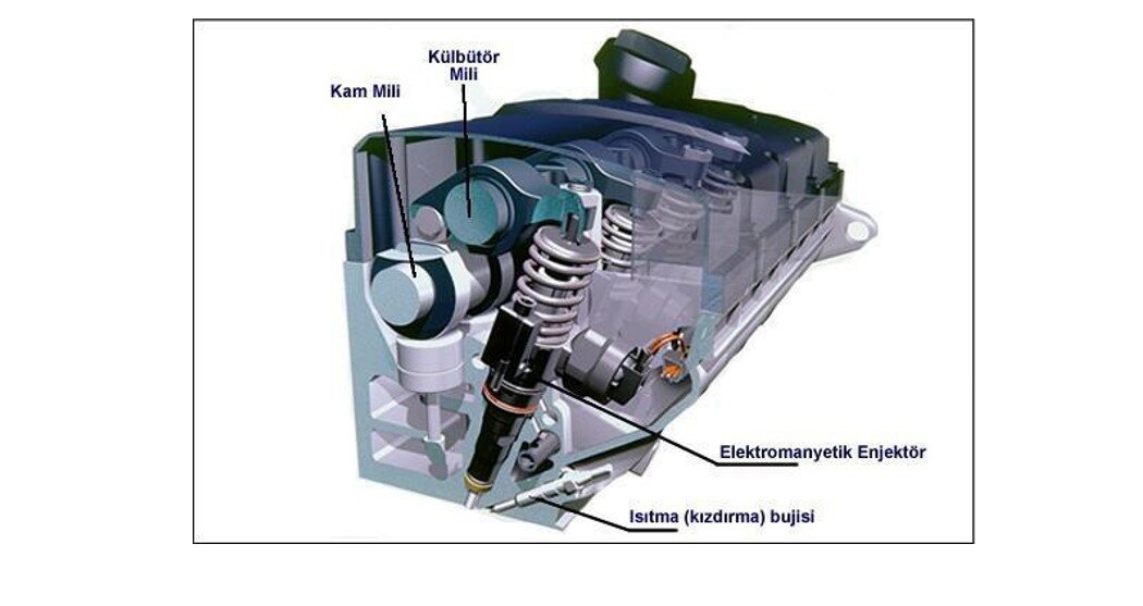 Elektromanyetik enjektörün motor üzerinde görünümü