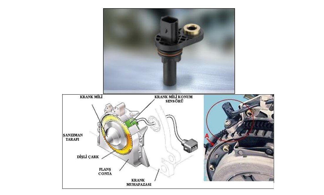 Krank mili konum sensörü ve motor üzerindeki yeri